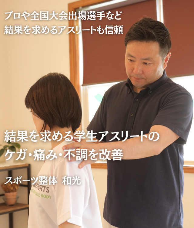 施術歴20年以上、延べ50,000症例以上の臨床経験があり、プロや全国大会出場選手からも信頼されています。