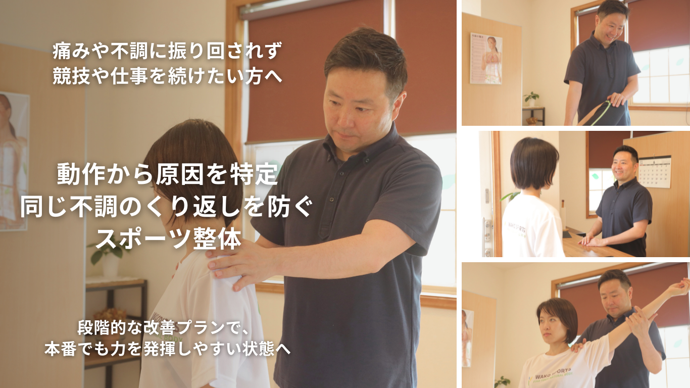 ただ痛みを和らげるだけではなく、同じ不調を繰り返しにくいコンディションづくりを目指すスポーツ整体です。