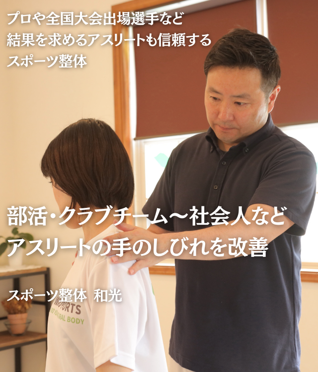 「何をやってもどこに行っても改善しない症状」や「いつまでも改善しない症状」は、当院のスポーツ整体で改善できます。