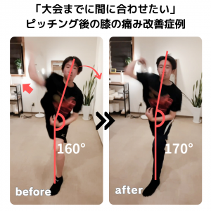 ピッチング時の体幹角度160°→170° / 改善施術回数4回・改善期間10日間