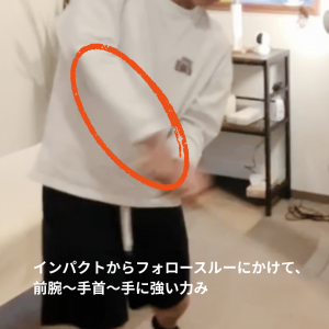 ・インパクトからフォロースルーで手首〜前腕に筋緊張