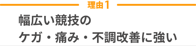 施術では、《幅広い競技》の《様々な動き》から、力みや緊張などの身体の負担を取り除くことで、症状を根本改善へと導いています。
