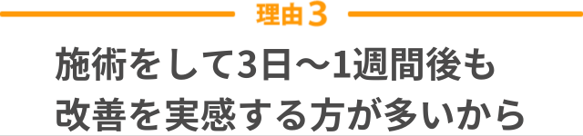 そのため施術を受けた方の9割以上が、施術後3日〜1週間をかけての改善の実感をされています。