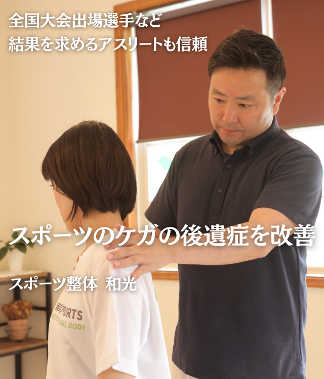 「何をやってもどこに行っても改善しない症状」や「いつまでも改善しない症状」は、当院のスポーツ整体で改善できます。
